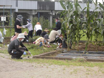 学年の農園や、校庭周辺の草取りなどをしていただきました。
