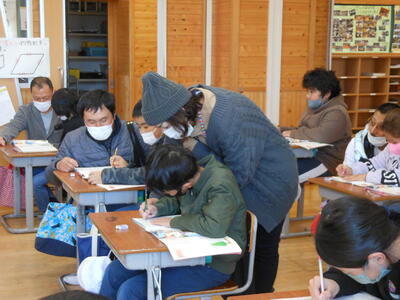 詩や音読の発表、漢字など、各学年の子どもたちが集中して学習していました。