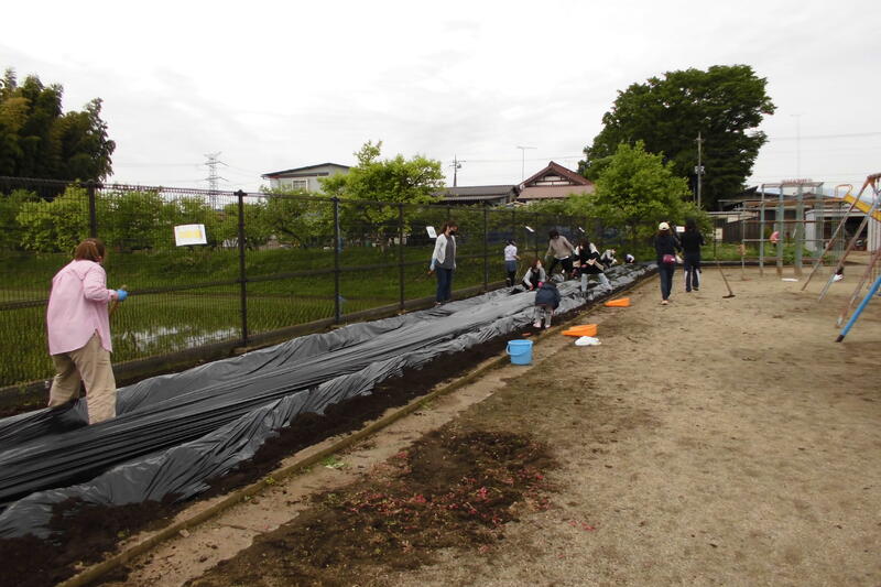 除草や校庭の整備をしていただき、とてもきれいになりました。畑の整備も行い、これから野菜の収穫が楽しみです。