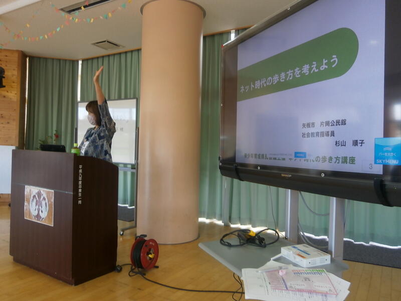 杉山 順子 様 を講師に迎え、スマホを使う目的や必要性について、子どもたちと一緒に学びました。