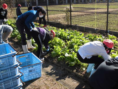 青空の下、2校時目に全校生による農園活動を実施しました。子どもたちは、自分の育てたい苗を選び、農園に植えました。その後、除草活動を行いました。みんなで大切に育てていきましょう。