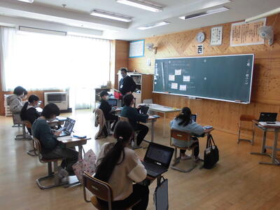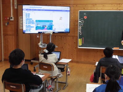 1・2校時目に6年生、3・4校時目に4年生が、ICT支援事業としてプログラミング教育を行いました。6年生は、プロロボUSBエディタを使ってロボットを動かす授業でした。また、4年生は、スクラッチを使って条件を満たした都道府県を探し出す授業でした。プログラミング教育のねらいは、「プログラミング的思考」を育むことにあります。コンピュータに意図した処理を行わせるために必要な論理的思考力を身に付けるために、本日の学習活動があります。子どもたちは、目を輝かせながら活動に取り組んでいました。動き出すロボットや画像を見て、嬉しそうにしていた姿が印象的でした。