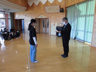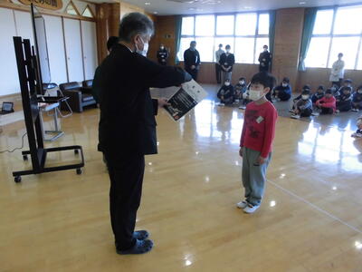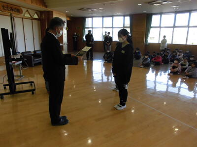 本日、冬休み前集会を実施しました。いよいよ26日(火)から14日間の冬休みが始まります。冬休みは、この1年間を振り返り、新たな目標を定めるという大きな節目となる休みです。話しの中で、「家族と一緒に目標を決めてみましょう。」と子どもたちに呼びかけました。ぜひ、一緒に目標を立ててみてください。また、集会の中で表彰も行いました。表彰された児童のみなさん、おめでとうございます。今年もあとわずかとなりました。ここまで大きなけがや事故もなく子どもたちが学校生活を送ることができたのも、保護者の皆様をはじめ地域の方々のご支援・ご協力があったからこそです。今後ともよろしくお願いいたします。