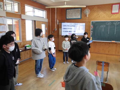 3年生は、理科で学習したことを生かし、おもちゃ作りをしました。今日の授業は、その発表会でした。風やゴムの力を利用した自動車、磁石を利用した魚釣りゲーム、電池を使ったゲームなど、どのおもちゃも工夫が見られました。