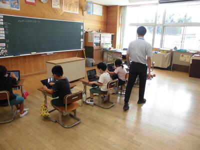 ICT活用推進教員である北原先生をお呼びして、1・5年生で授業が行われました。1年生では、簡単なプログラミングの授業を行ないました。また5年生では、算数科で各々の考えを共有する場面にICTを活用しました。発達段階に応じて効果的なICTの活用方法について学びました。