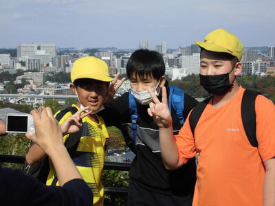 青葉城址の見学、昼食の様子です。天気は快晴です。とてもよい天気です。子どもたちは、とても元気です。修学旅行を満喫しています。