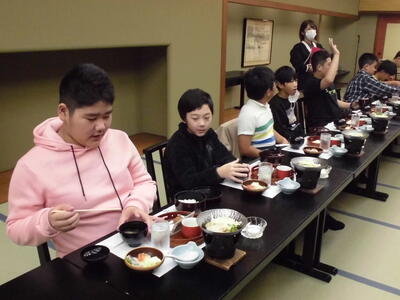 修学旅行2日目がスタートしました。子どもたちは、規律正しく1日目を過しました。みんな元気です。朝の様子と朝食の様子です。