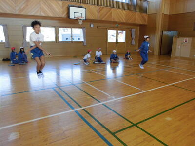 2校時目に、校内なわ跳び大会を行いました。2・3年生は、前跳びとかけ足跳びに挑戦しました。4・5・6年生は、あや跳びと二重跳びに挑戦しました。パワーアップタイムや体育の授業で練習しました。どの児童も練習の成果が発揮でき、自己記録を大きく更新することができました。持久走に続き、なわ跳びにおいても、粘り強く取り組むことができました。