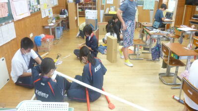 本日より3日間、キャリアウイークで片岡中学校から3名の生徒が職場体験に来ています。本日は運動会の準備物作り、図書事務のお手伝いなどを行ってくれました。