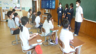 5時間目は、6年生に中学校生活の話をしてくれました。そのあと6年生から質問攻めにあいました。