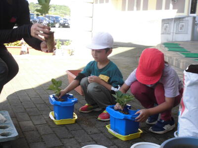 5校時1年生が、市内豊田地区にある澳原いちご園さんをお招きし、いちごの苗を植えました。
