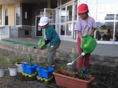 最後に「おいしくなあれ おいしくなあれ」といちごの苗に声をかけ、お水をたくさんあげました。