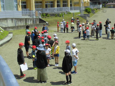 3校時目に、1年生を迎える会を実施しました。会の開催にあたり、5・6年生は休み時間などを使って準備を進めてきました。5年生は入退場の案内とプレゼントのメダル作り、6年生は運営面を担当しました。縦割り班での自己紹介後、へび鬼を行いました。和やかなうちに会は進み、終始笑顔が絶えませんでした。会の終了に際して、1年生からは、「これからも仲良くしてください。遊んでください。」とのあいさつがありました。