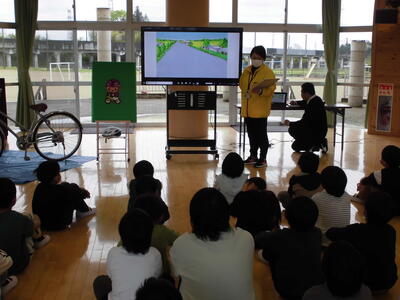 2校時目に全校生で、交通安全教室を実施しました。あいにくの雨のため、校庭に描いた模擬道路での体験は行なわず、多目的室で講話や映像による学習となりました。安全に登下校や自転車乗りをするための正しい知識を学ぶことができました。講師である市生活安全課と片岡駐在所の皆さん、ありがとうございました。