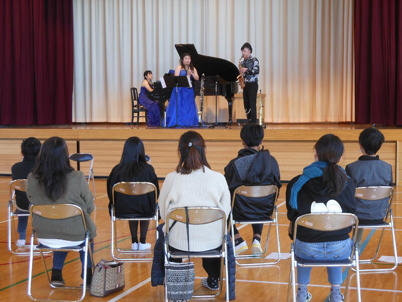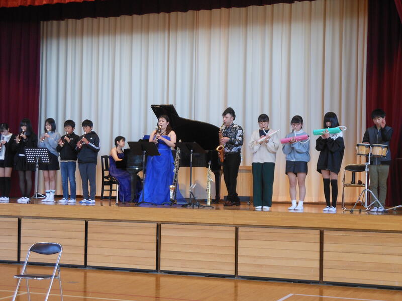 2月の親子ふれあい活動 6年生 投稿日時 : 2023/02/21 安沢小学校 カテゴリ: 2月17日(金) 6年生小学校最後の親子ふれあい活動を行いました。 家庭科室で卒業式に付けるコサージュを作りました。 手作りのコサージュを付けて3月17日はいよいよ卒業式です。 次に体育館でアンサンブルルーチェの皆様の演奏会を鑑賞しました。 ピアノ、クラリネット、サックスのアンサンブルで、とても素敵な演奏でした。 サプライズで子どもたちと「ルパンⅢ世」をコラボしてくださりました。 小学校の思い出の素敵な1ページになりました。 Tweet {{options.likeCount}} {{options.likeCount}} {{options.unlikeCount}} {{options.unlikeCount}} 0 コメント