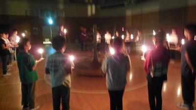 そして、13日最後の夜の活動としてキャンドルファイヤーを行いました。幻想的な光景に子どもたちは目を奪われていました。