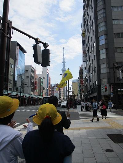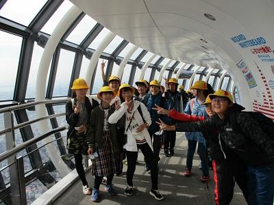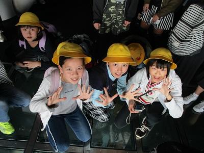 まず、東京スカイツリーを見学しました。エレベーターに乗って展望デッキに到着したとたん、子どもたちは眼下の風景に歓声を上げました。