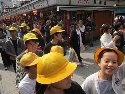 その後、浅草寺・仲見世通りを見学、昼食にもんじゃ焼きを楽しく食べました。
