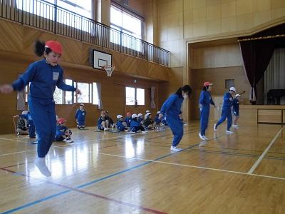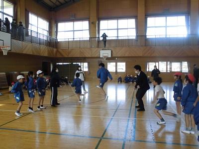 長縄跳びでは、各学年とも最高記録達成に向けて練習の成果を十分に発揮することができました。最後は、全員がすがすがしい表情で終わることができました。