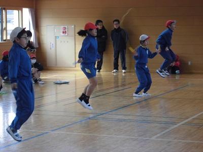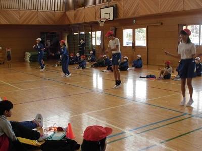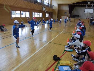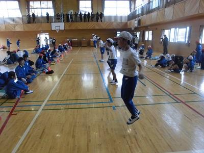 長縄跳びでは、各学年とも最高記録達成に向けて練習の成果を十分に発揮することができました。最後は、全員がすがすがしい表情で終わることができました。