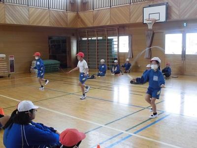 今年度から学年ごとの大縄跳びに加えて個人の短縄跳びも行いました。