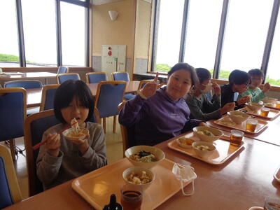 昼食の様子です。みんないい笑顔です。