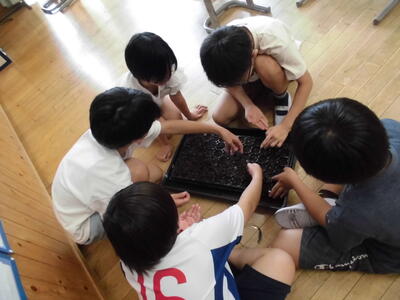 上手に発芽させるためにみんなで考えながら一粒一粒丁寧に種まきポットにまきました。一生懸命育てていきたいと思います。
