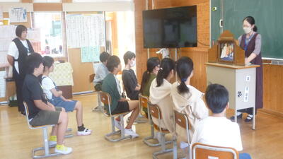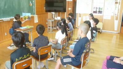 5年生は「ライフタイム」「やさいのはな なんのはな?」野菜にも花が咲くことをクイズ形式で読み進めてくださいました。子どもたちは大盛り上がりでした。