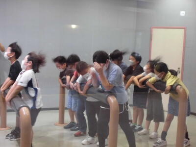 館内には、各種体験コーナーが設置されており、今回は暴風雨や火災による煙、地震の体験をしました。災害時に自分の身をどのように守ればよいのか、災害に備えてできることは何かを学ぶことができました。