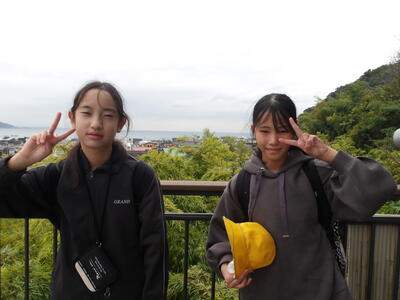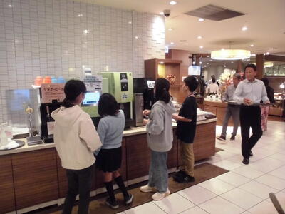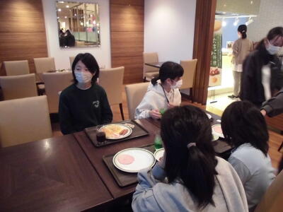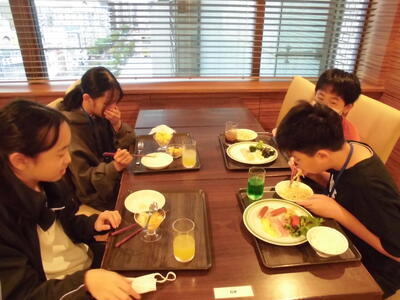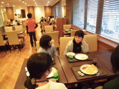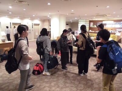 修学旅行2日目です。みんな元気です。朝食と退館式の様子です。