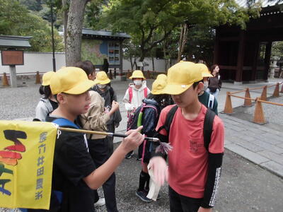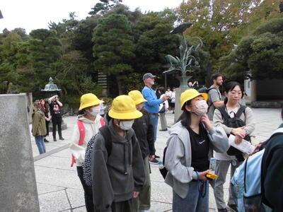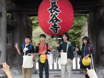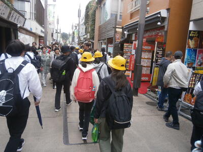 鎌倉での班別行動です。班で協力し合って、最終目的地の鶴岡八幡宮をめざします。