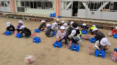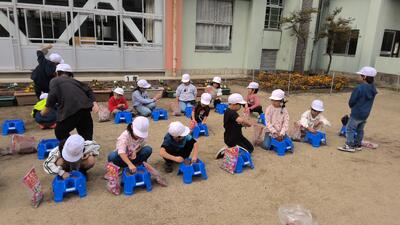 生活科では、あさがおのリースが作り終わり、春に向けてチューリップの球根を植えました。