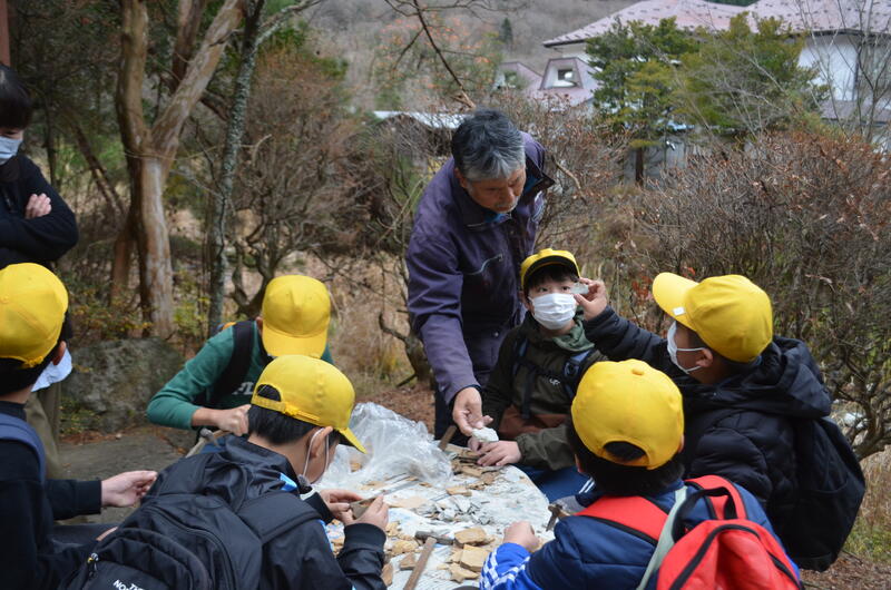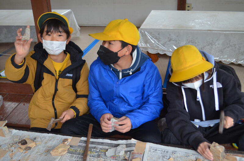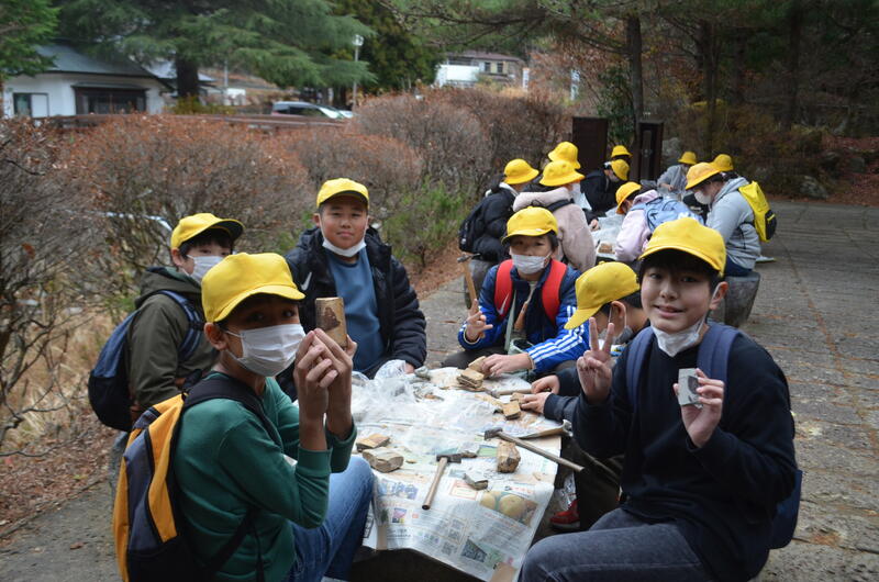 栃木県立博物館特別学芸員の柏村先生に解説をしていただいたので、子どもたちの興味関心も高まり、深い学びにつなげることができました。自分の石から発見した化石について質問に行くと、なんでも答えていただけるので、子どもたちはとてもうれしそうでした。