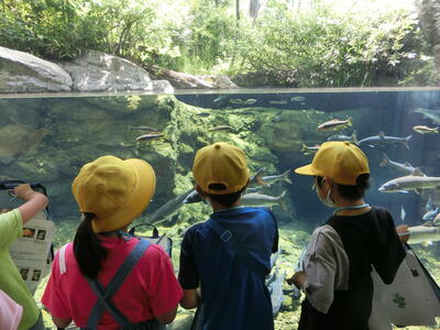 動物園では、おそるおそるキリンにえさをあげたり、ホワイトタイガーに目を丸くしたり、いろいろな動物を興味深々な様子で見て歩きました。おいしいお弁当タイムの後は、乗り物コーナーへ。「どきどきするね。」「次はあれに乗ろう。」とグループで仲良く行動できました。思い出に残る一日になりました。