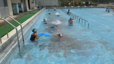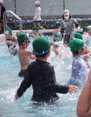 体育科での水遊びの学習が終わりました。水に顔をつけるのが苦手だった子ども達が、日に日につけられるようになり、「潜れた!」「浮いた!」「泳げた!」など喜びの声が聞こえてきました。水遊びの学習は終わってしまいましたが、これから夏本番。学習したことが夏休みで活用できるといいですね。