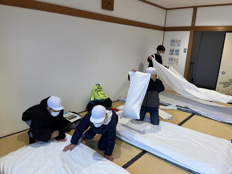 その後は各自の部屋に行き、班員で協力してベットメイキングをしました。