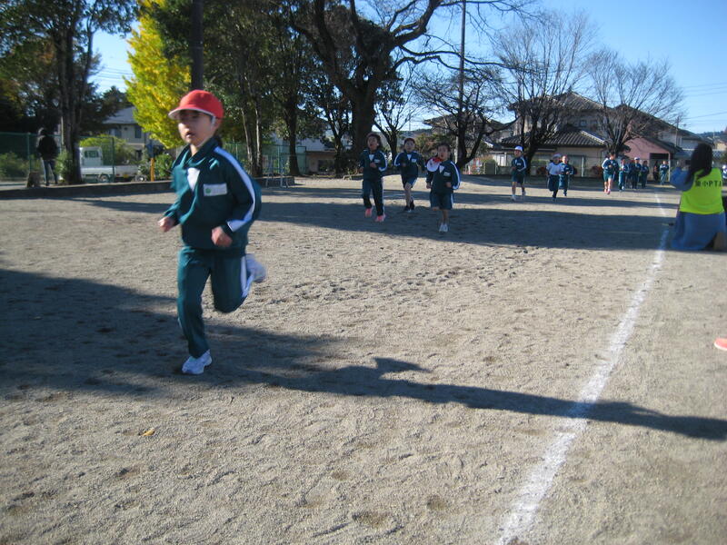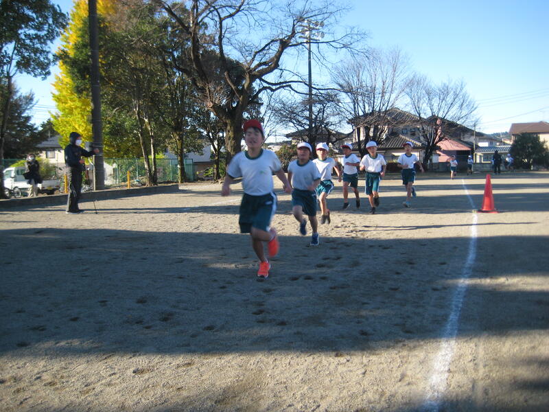 挑戦しようと精一杯走りました。児童は、これまでの練習を生かし、顔を真っ赤にして汗を流しながら走りました。完走