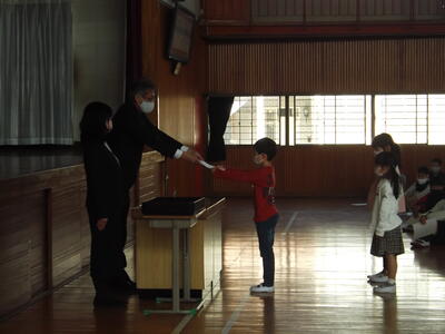 2時間目に修了式を実施しました。各学年の代表児童は立派な態度で修了証書(あゆみ)と進級祝賞を受け取ることができました。校長先生からは授業の振り返りと同じようにあゆみをしっかりと振り返り、次年度へ生かしてほしいとのお話がありました。健康と安全に気を付けて春休みを過ごし、また4月に元気に会えることを楽しみにしています。