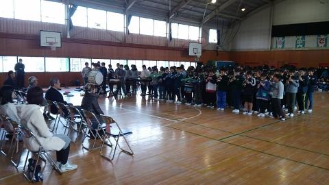 その日の3時間目に"感謝のつどい”が開かれました。常日ごろから児童がお世話になっている、ポットの会の方々、交通指導員の方々、見守り隊の方々、5年生の田んぼの指導をしてくださった藤田さんをお招きして、それぞれの学年ごとに日ごろの感謝を伝える歌や演奏などの発表を行いました。
