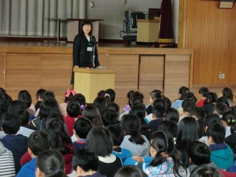 「私も東小学校がよい学校になるように考えています。みなさんがこんな子どもに育ってほしいなということを考えています。それが黒板の上にはってある学校の目標です。