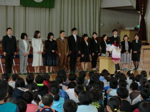 着任式では新たに着任された先生方の紹介が行われた後、代表の6年児童により歓迎の言葉が述べられました。