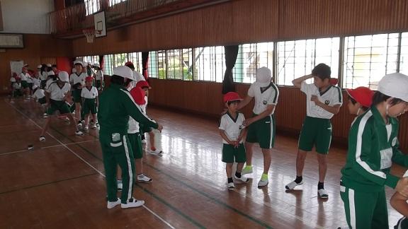 今年度も新体力テストを実施しました。1年生にとっては初めての体験です。6年生とペアを組み、やり方を教えてもらいながら行いました。写真は反復横跳びとシャトルランの様子です。慣れた様子でやり方を教える6年生の姿を大変頼もしく感じました。1年生もそれに応え、一生懸命取り組みました。