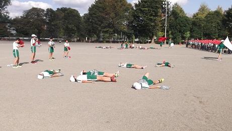 応援団の児童はこれまでに何度も集まり、振り付けや応援歌を考えて練習してきました。最後の写真をよく見ると、応援団員が校庭に倒れています。何が起きたのでしょう・・・? この後、楽しい演出を見せてくれました。どうぞ、本番の応援合戦を楽しみにしていてください!