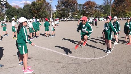 今日の体力向上タイムは「長縄跳び」と「5分間走」です。長縄では連続してうまく跳べて満足そうな児童もいれば、タイミングがずれてひっかかってしまい、悔しそうな表情の児童もいます。しかし、そんな時「だいじょうぶ、もっと足を高く!!」など、やさしく励ましの言葉をかけてくれる児童もおり、その様子にほっとしました。
