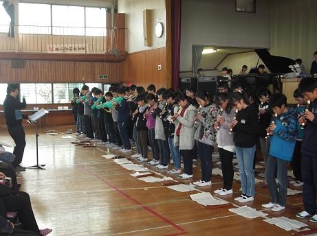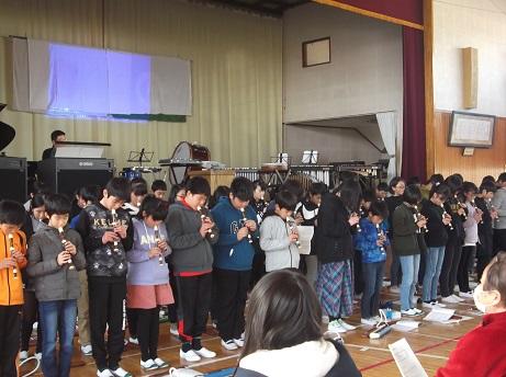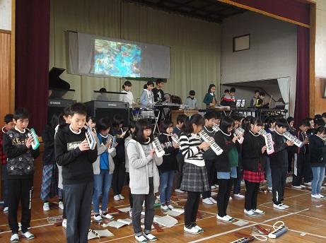 小学校最後の授業参観、6年生は学年そろっての音楽の授業を行いました。
