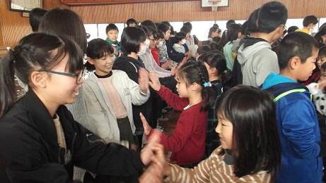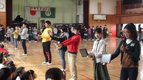 今日は6年生を送る会が実施されました。この会は卒業を迎える6年生に対して、お祝いの気持ちや、お世話になった感謝の気持ちを表す会です。各学年ごとに、劇や歌、合奏などの出し物で、6年生への感謝の気持ちを表すことができました。6年生と一緒に行ったクラス対抗ゲームでも、楽しい時間を過ごすことができました。
