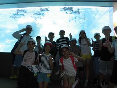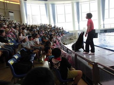 イルカ・アシカショーでは、水がかかる最前列で見学していました。