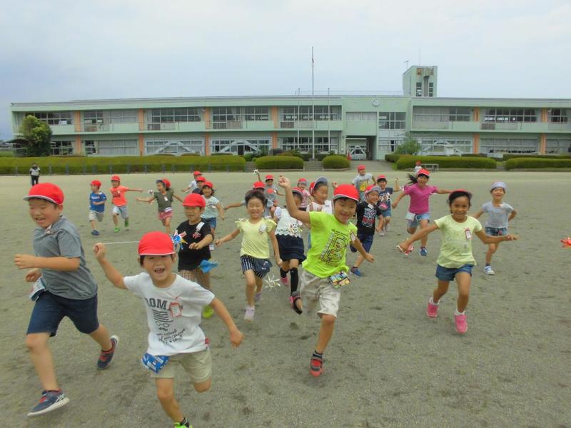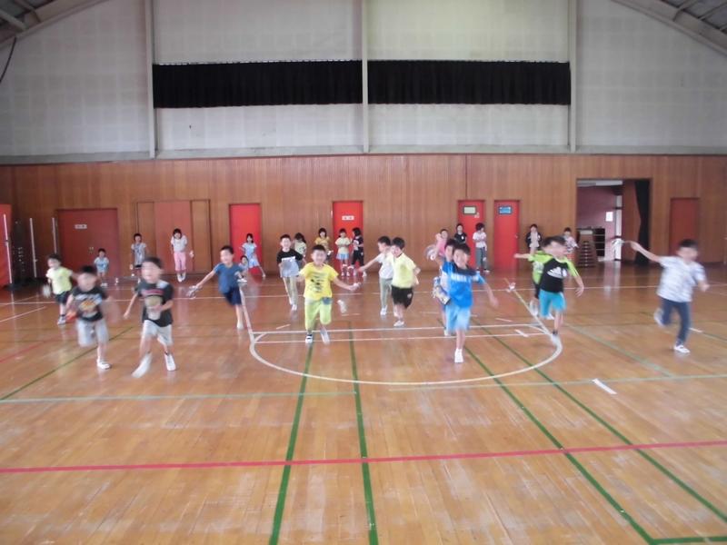 作成した後には、校庭や体育館で走って、回る様子を見ました。