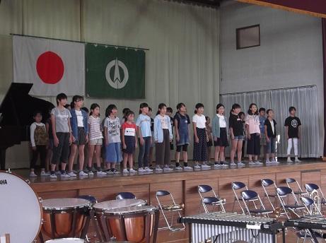 音楽集会は、来週の音楽祭に向け合唱部と吹奏楽部が全校児童のために曲を披露してくれました。