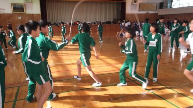 午前中にあやとびや二重とびなどの個人の部を行い、午後は団体でながなわとびの記録を測りました。